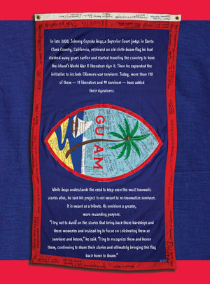 “Hasso” chronicles Gogo’s passion project honoring the CHamoru survivors of the war and U.S. military personnel who liberated Guam. In 2020, he began traveling the country with an old cloth Guam flag to have survivors — including three former governors of Guam — and liberators sign it. More than 100 — nearly a dozen liberators and more than 90 survivors — have added their signatures.