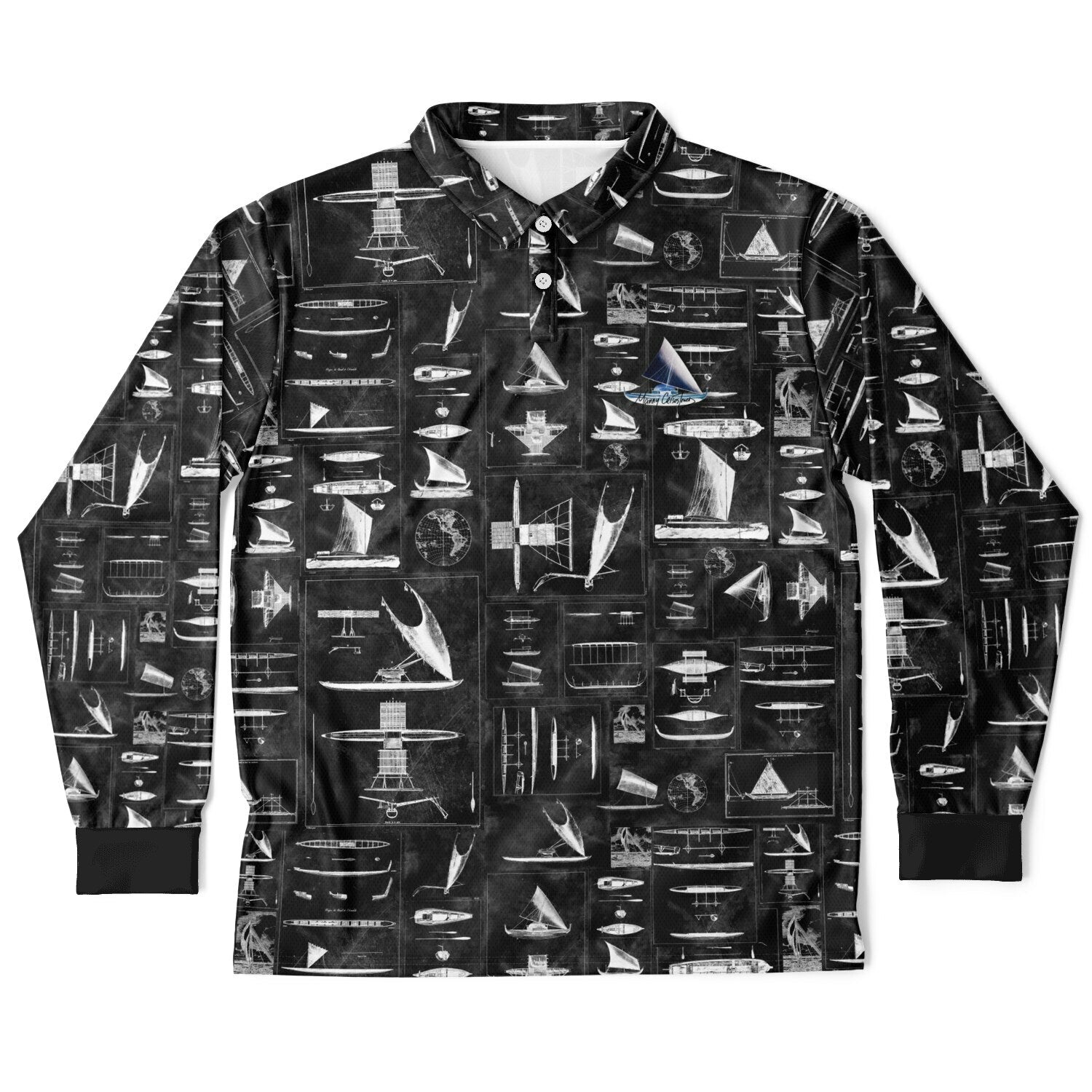 $65.00 USDOceania Seafaring Vessels Reimagined (Black/silver) Men’s Long Sleeve Polo Shirt